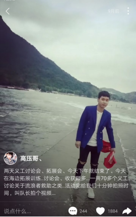 除了快手,何朝成他们还会用微视、抖音、微博、微信等平台。“在很多平台上,因为没有大v给我们转内容,能看到我们信息的人其实不多,即使看到了也帮助不了什么。反倒是快手上的老铁跟我们互动会多一些,南方、北方、城市、农村,各个地方都有老铁,能把流浪者的视频信息传递到很远,效果也会更好。”何朝成称。