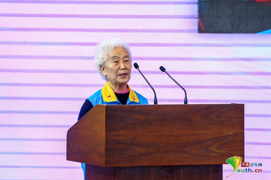 仪式上,老志愿者蔡奶奶、志愿管理团队代表郑春玲、中学生志愿者代表在会上分别发言。志愿者们合唱志愿歌曲《搭把手》。