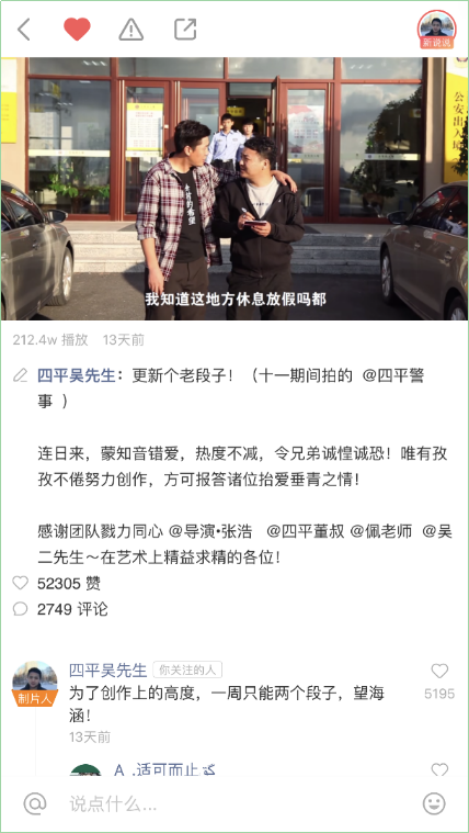 让吴尔渥吃下定心丸的,是来自快手用户们的评论鼓励与点赞支持,以及人民日报、光明日报等各大媒体的肯定。许多快手网友们看后直呼:“你们拍的不是段子,是新闻啊”、“太喜欢你们作品了,寓教于乐,记得快点更新!”各界的支持也让主创团队放开了思路,诞生了更多的精彩内容。
