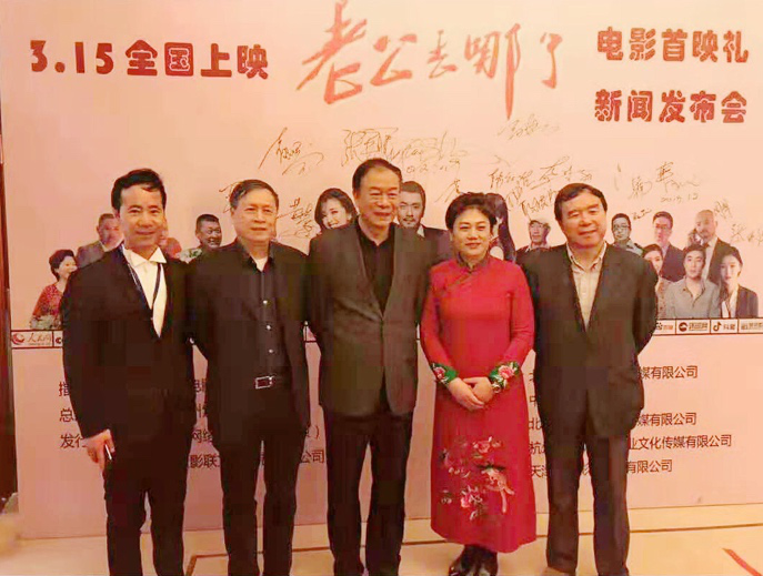 国家广电总局原副局长、中国电影基金会理事长张丕民(中)与马国辉女士(右二)参加首映礼并合影。主办方供图
