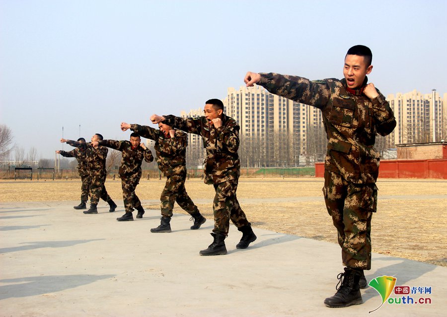 “嗒!嘿!杀!”一声声呼号声响彻训练场上空,空气中弥漫着浓浓的杀气,原来是战士们正在火热进行搏击拳训练。搏击拳讲究个眼神、气势、力度,战士们深刻理解其中要点,把每一次训练都当作实战,“勾拳、摆拳、正蹬、侧踹”,每一个动作都使出全力,每一声呼号都喊出了军人的血性。