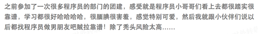 说到人品,程序员们是公认的踏实靠谱,严谨认真,展现种种优秀的品质,难怪程序员已经成为中国丈母娘选择女婿的新宠职业。