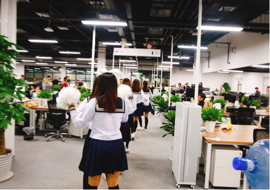 在快手,程序员节,不仅有美味的海鲜大餐,更有小姐姐激励师到工区给程序员们打电话。